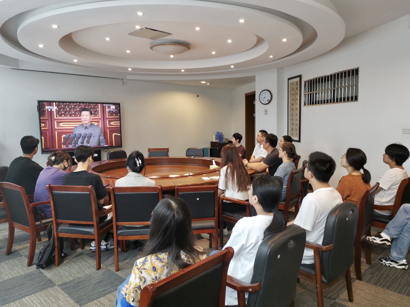 观看结束后,经济学院党委组织党支部开展线上集体学习,深入领会习近平总书记在庆祝中国共产党成立100周年大会上的重要讲话精神,交流心得体会。大家纷纷表示,回顾中国共产党百年奋斗的光辉历程,展望中华民族伟大复兴的光明前景,备受鼓舞、倍感振奋,对建党百年以来取得的伟大成就深感自豪,进一步坚定了信仰、信念、信心,增强了志气、骨气、底气。