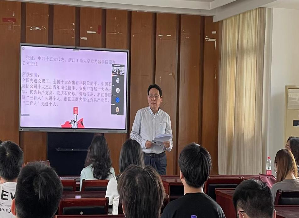 主讲人张征,曾任中共十五大代表,被评为全国先进女职工、全国十大杰出青年岗位能手、校优秀共产党员等。张征主要从三个方面讲述了自己的劳动故事。一是在安庆石化总厂炼油厂的工作经历。她秉持着“三勤”,即“腿勤、手勤、脑子勤”的原则,以“干一行钻一行”的精神,以厂为家,琢磨工作,磨炼了努力工作,遵章守纪的意志。二是在高校的工作经历。进入新环境,她勇担重任,多学多干,勉励同学们做诚实、正直、有操守的人。三是总结工作生涯经验。多年工作中,张征始终牢记领袖教诲,活到老、学到老、干到老,并带同学们重温了总书记对青年人的谆谆教诲和殷殷期盼。