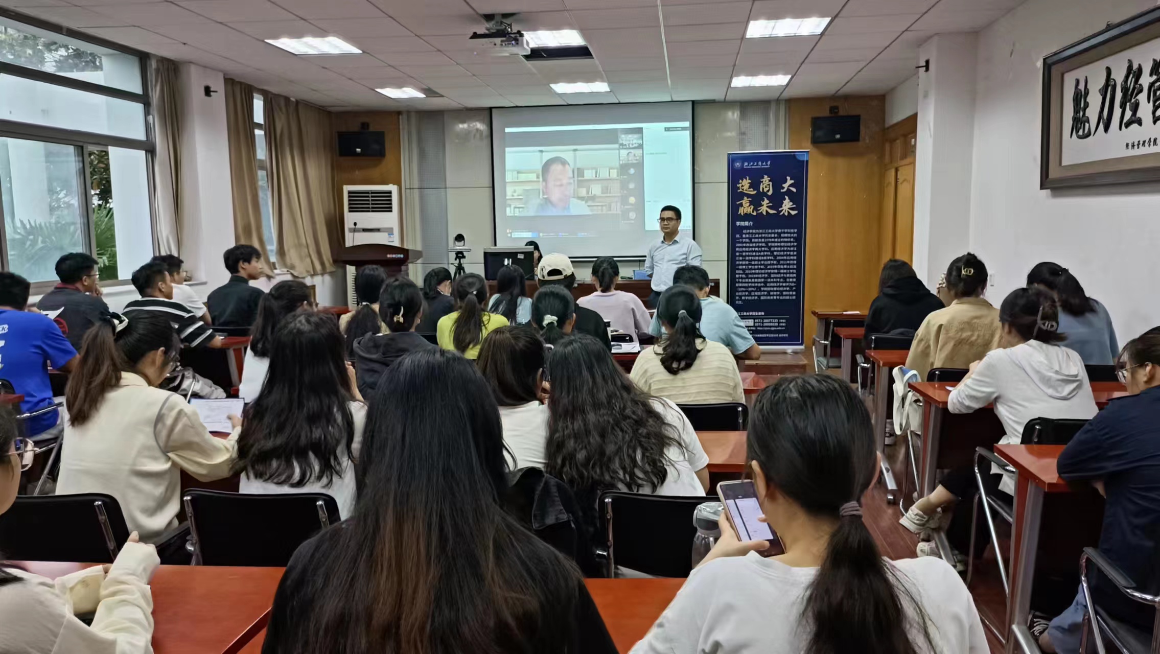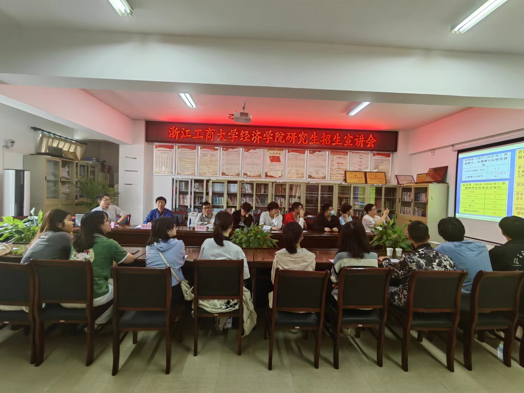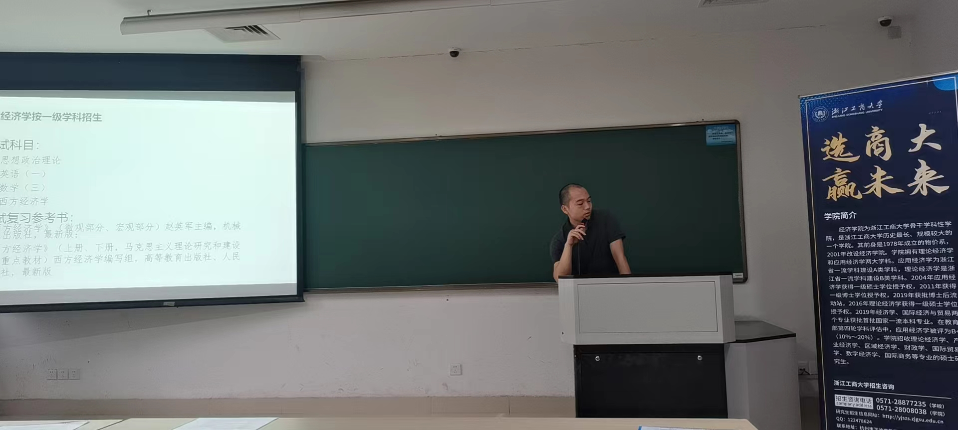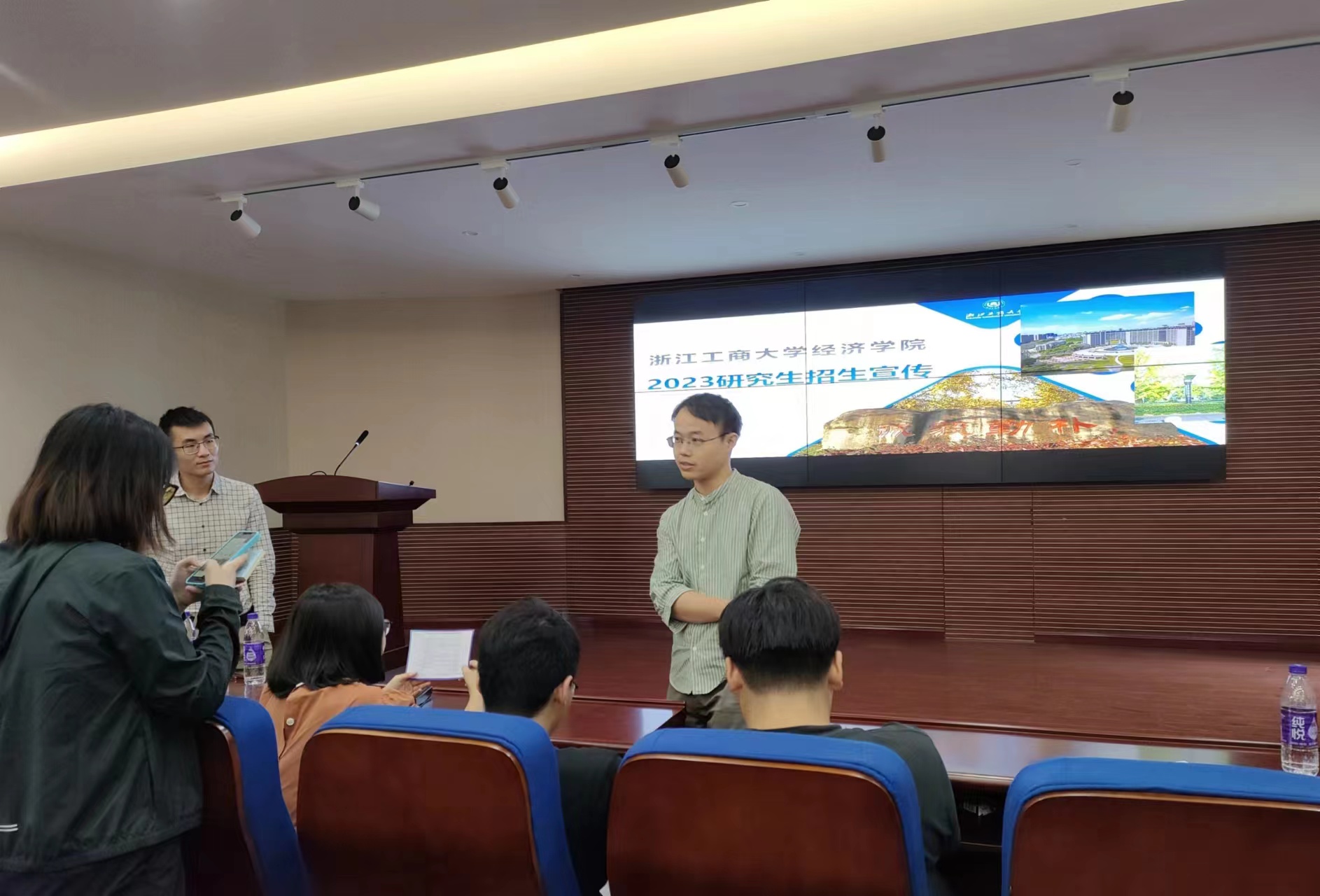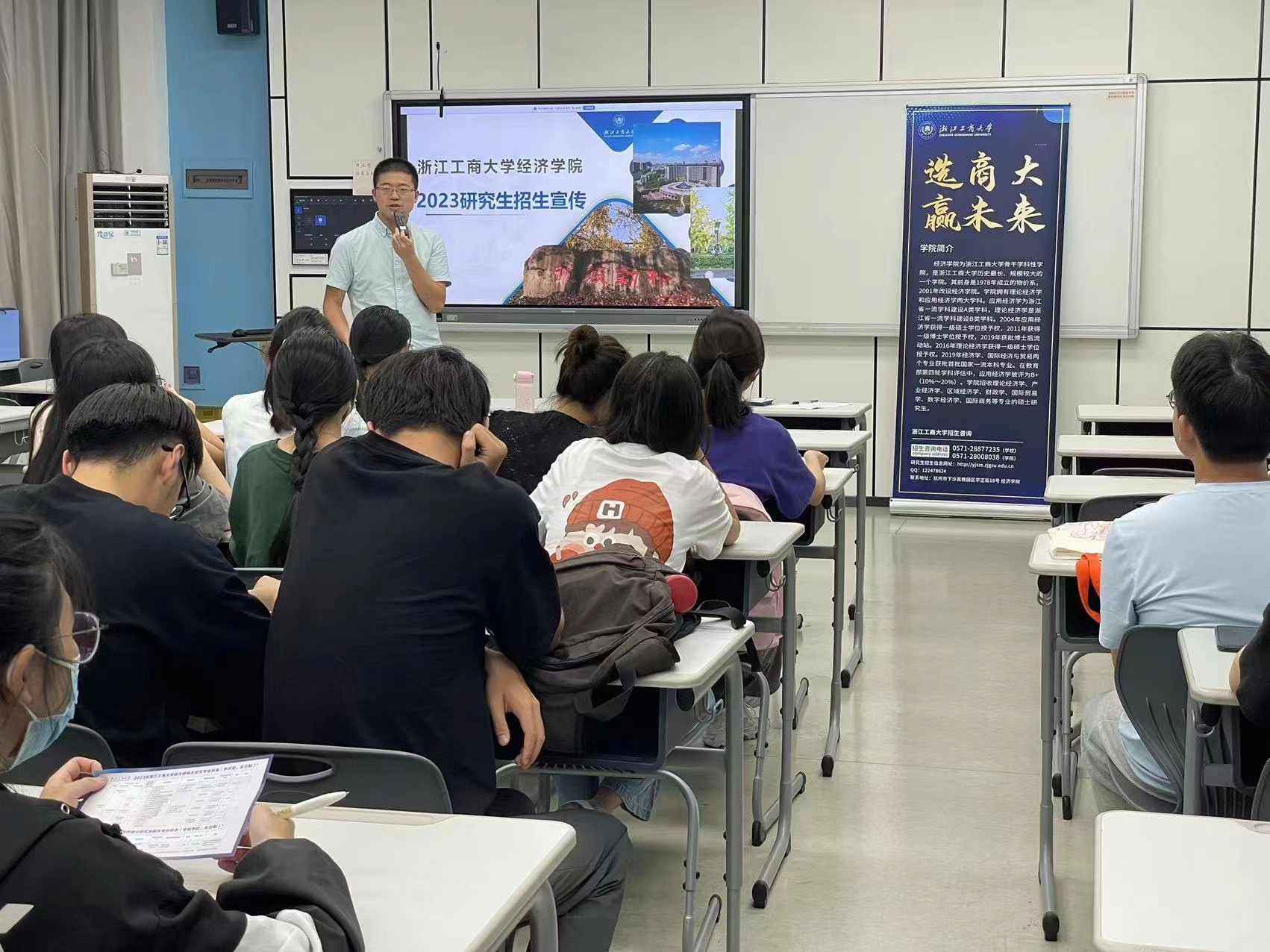 在招生宣讲会上,负责招生宣讲活动的老师们就经济学院研究生教育基本概况向学生们做了基本介绍。从学院概况、人才培养、大师引领、顶尖平台、优质课程、出国深造、就业指导和学生们关注的研究生生活、奖助体系、招生政策等方面,为学生们进行了全面而详细的介绍,特别介绍了经济学院新设的数字经济方向的硕士点和博士点的情况,同时也回答了金融、统计、财务、人力资源管理、管理工程等相关专业同学的提问,让同学们对浙江工商大学经济学院有了深入的了解,并对学校产生了浓厚的兴趣。