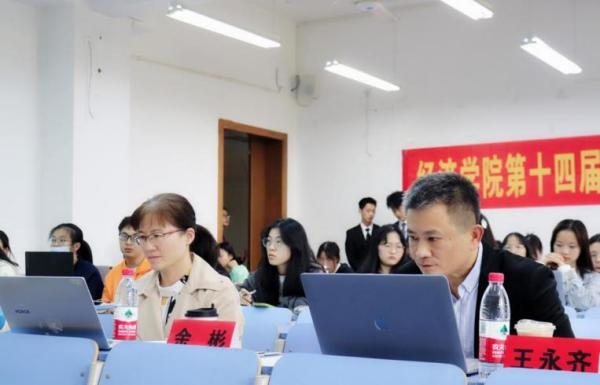 11月2日下午13:30,浙江工商大学经济学院第十四届“经济杯”学生创新创业竞赛决赛答辩在经济207、211教室顺利举行。校团委副书记张华老师,经济学院党委副书记余彬老师,学院副院长毛丰付教授,院长助理王永齐教授,卢洪雨教授,李怀政教授,学校特聘研究员、数字经济系主任王海副教授,学校特聘研究员、国际经济与贸易系主任诸竹君副教授,经济系副主任丁预立老师,学校特聘研究员于斌斌副教授等作为评委出席答辩会。