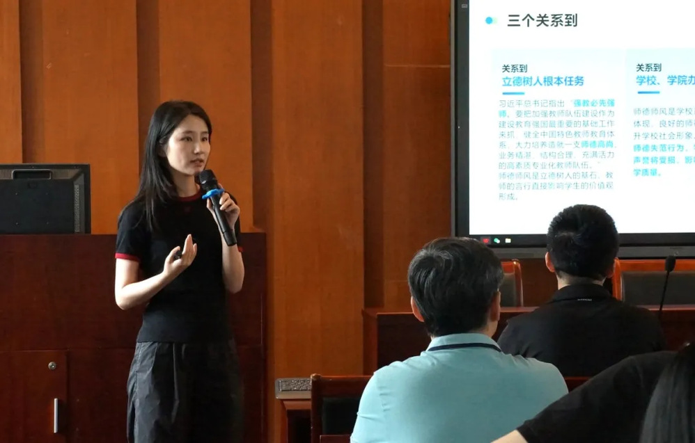 周婉钰紧密结合高校教师职业行为准则与国家相关政策法规,深入剖析了近年来教育领域出现的师德失范典型案例。讲座内容详实、发人深省,尤其对《新时代高校教师职业行为十项准则》及“红七条”等师德禁行行为进行了重点解读。她强调,教师的思想政治素质和道德情操直接影响人才培养质量,全体教师必须时刻自重、自省、自警、自励,自觉维护教师职业声誉,以赤诚之心、奉献之心、仁爱之心投身教书育人伟业。