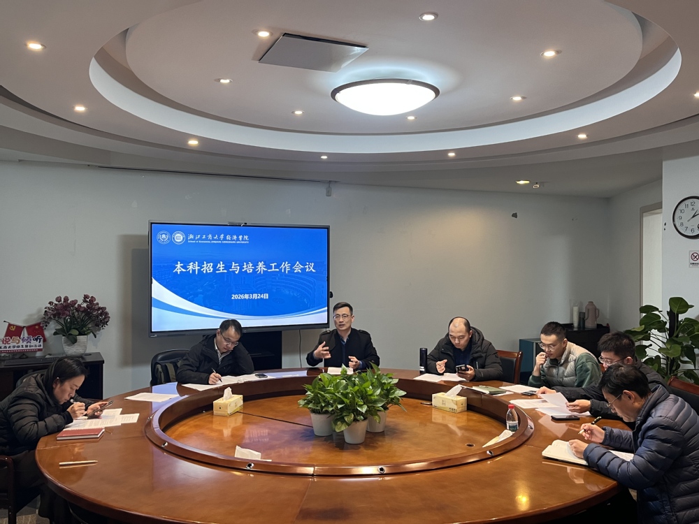 3月24日,经济学院召开2026年本科招生工作推进会议,全面部署本年度本科招生各项重点工作,明确工作方向、细化任务分工,确保招生工作有序高效推进。学院党委书记虞晓东、副书记蒋豪、副院长王海出席会议,经济系主任丁预立、国际经济与贸易系主任商辉、数字经济系主任郑晓冬、经济学(拔尖人才创新)专业负责人朱昊、学办主任兼招生联络员薛陈炎参加会议。会议由虞晓东主持。