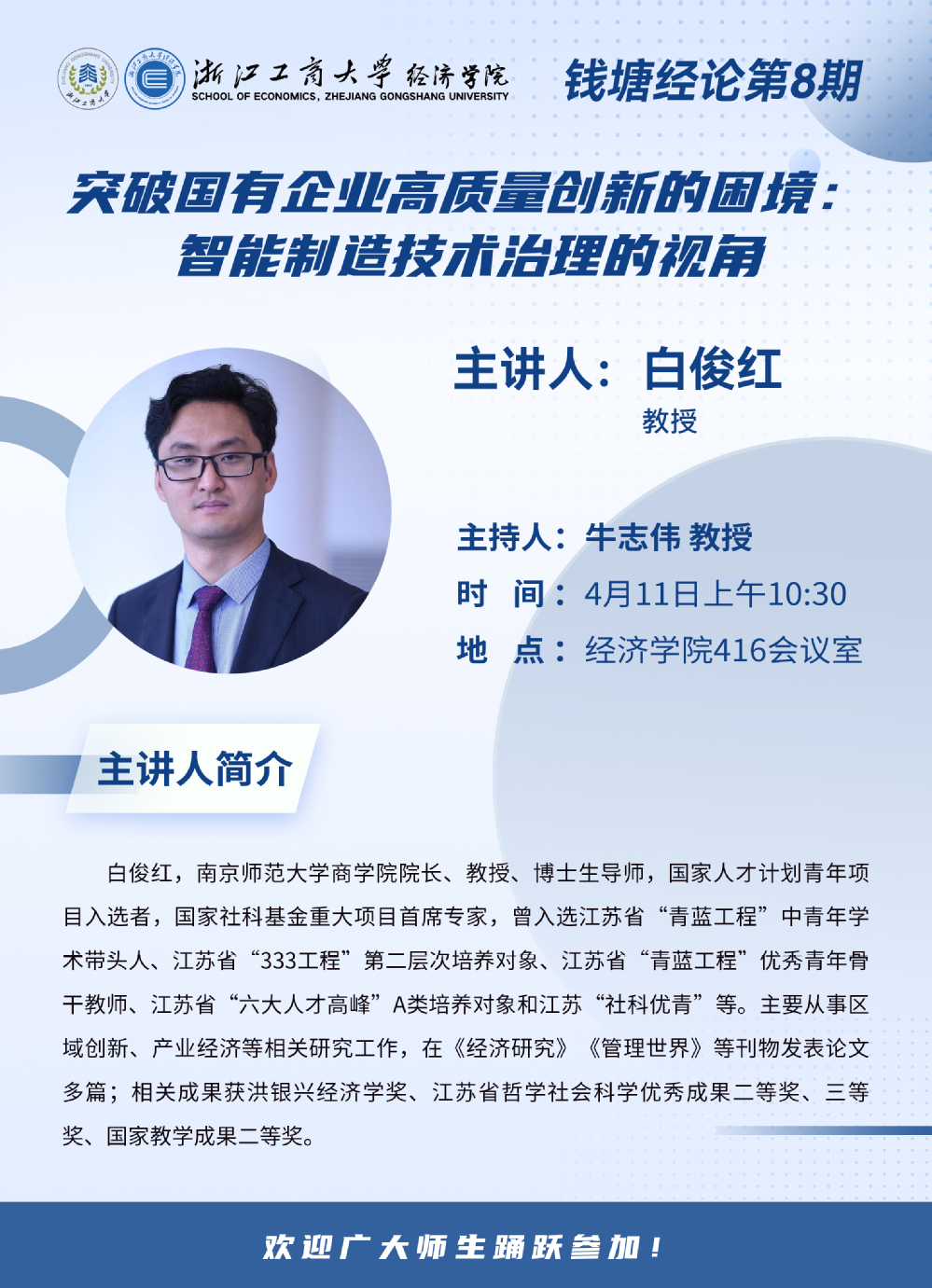钱塘经论第8期 | 讲座预告:突破国有企业高质量创新的困境:智能制造技术治理的视角