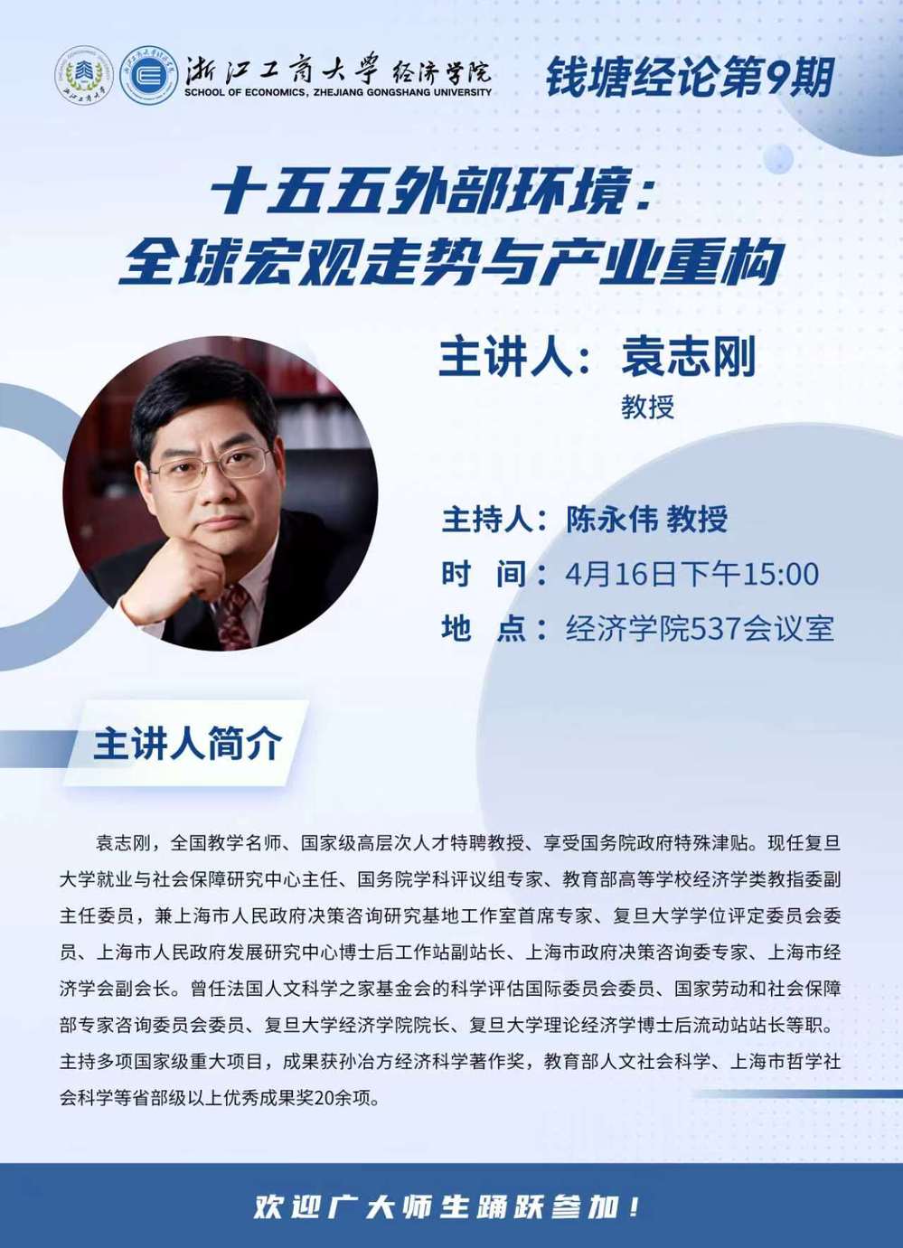 钱塘经论第9期 | 讲座预告:十五五外部环境:全球宏观走势与产业重构