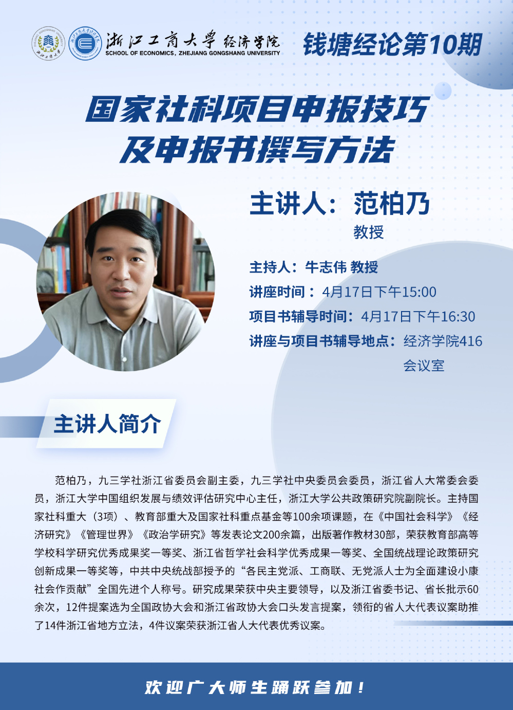 钱塘经论第10期 | 讲座预告:国家社科项目申报技巧及申报书撰写方法